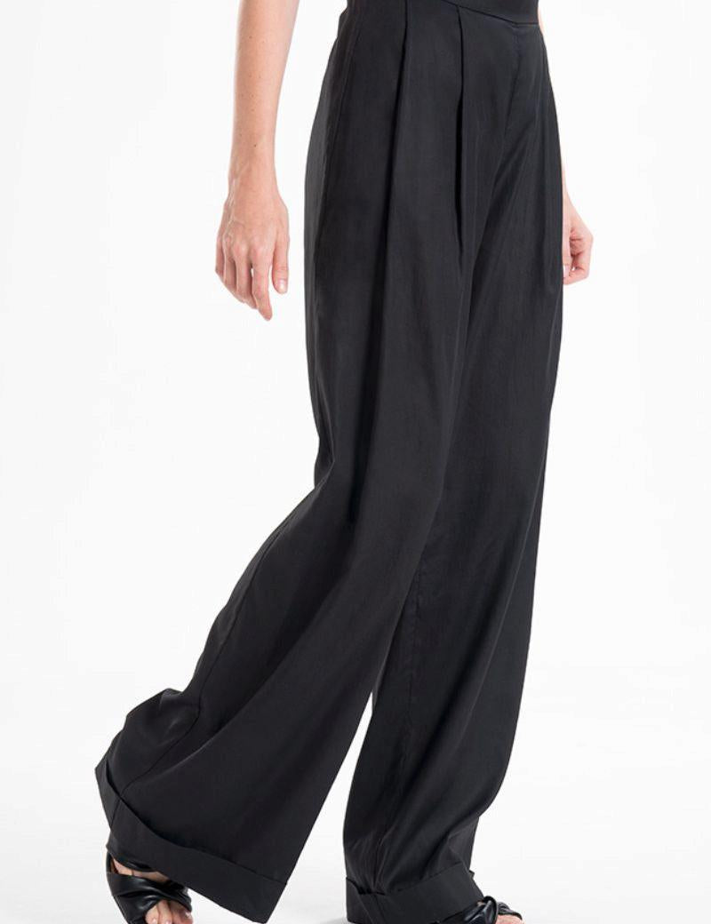 Broadway Liza Wide-Leg Virgin Wool Pants in Deep Black