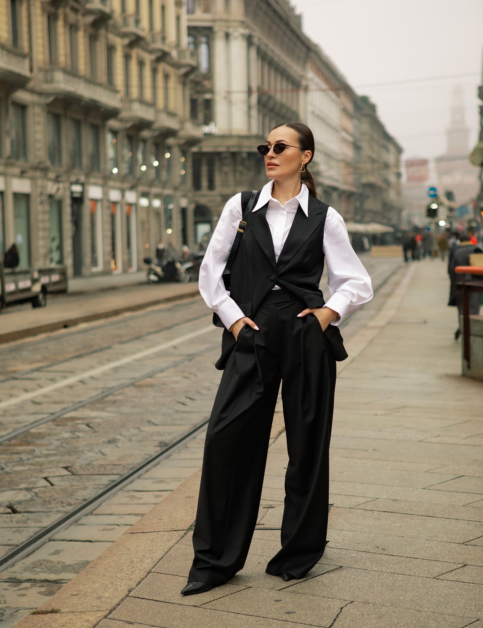 Broadway Liza Longline Virgin Wool Waistcoat in Deep Black