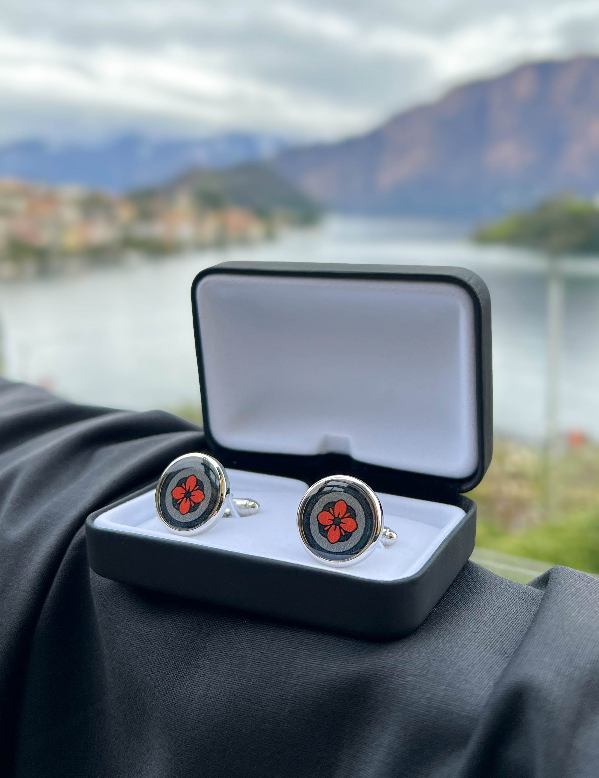 Lava Orange Floral Print Handmade Italian Cufflinks with Clear Resin