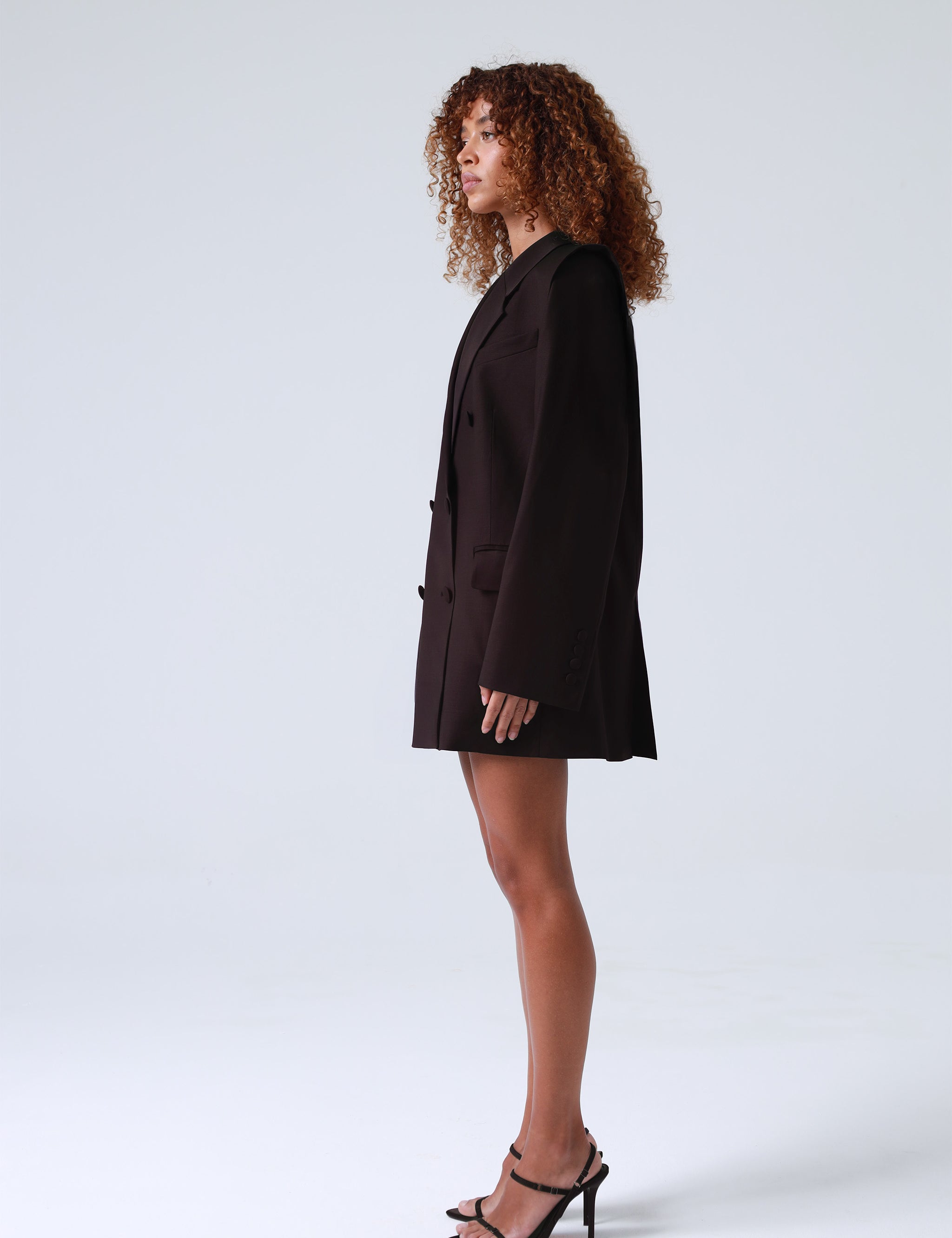Broadway Monica Double-Breasted Virgin Wool Blazer in Dark Coffee