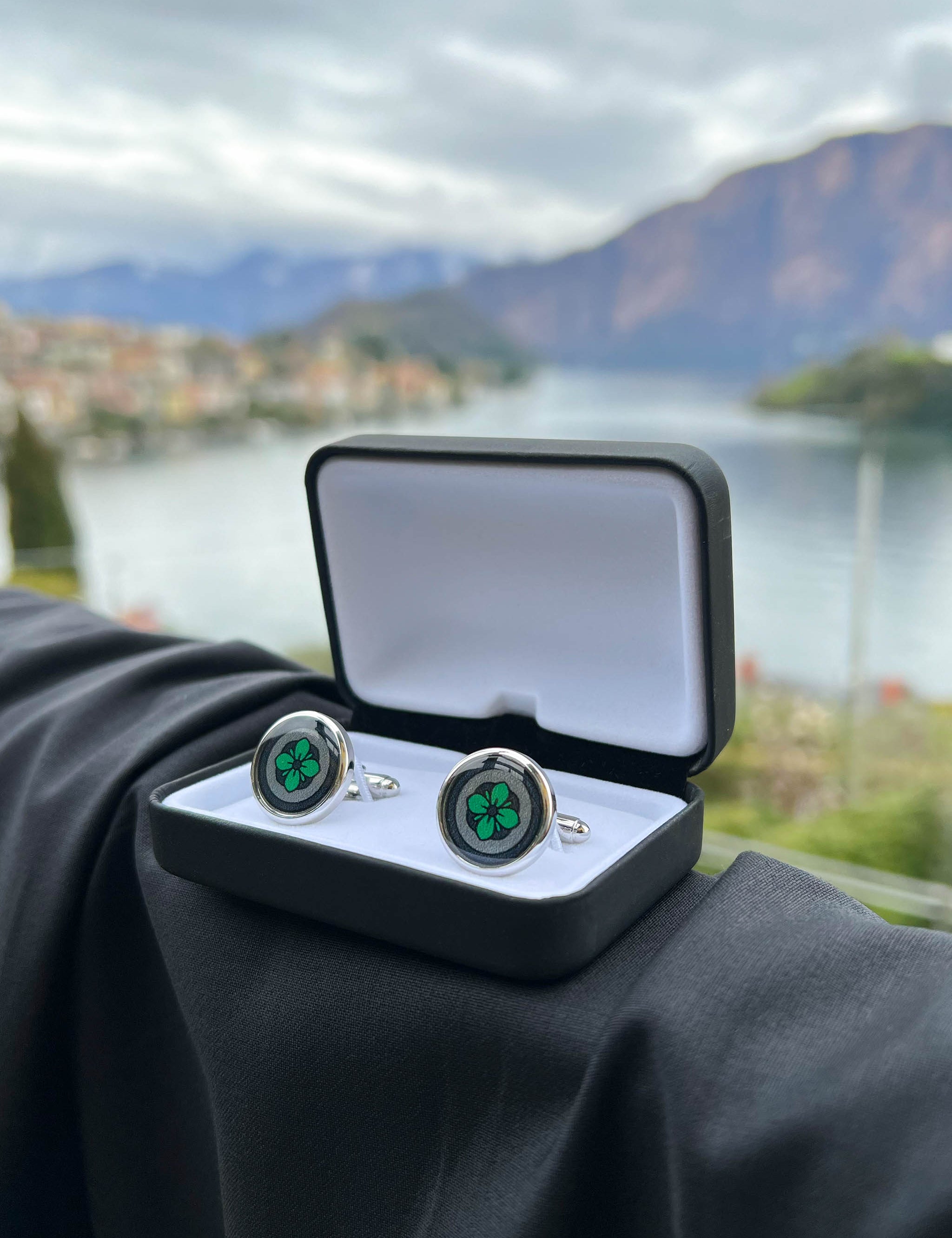 Meadow Green Floral Print Handmade Italian Cufflinks with Clear Resin