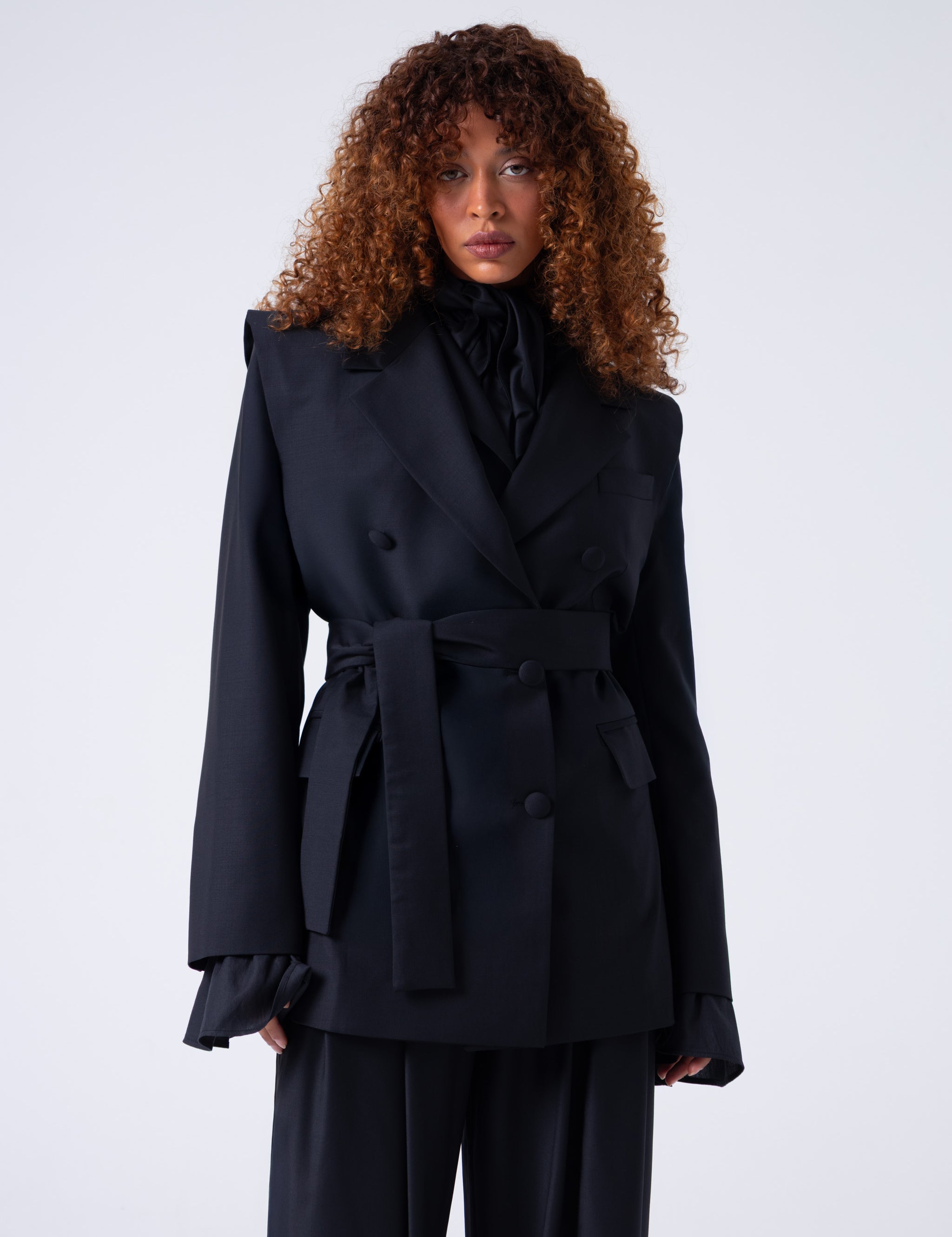 Broadway Liza Double-Breasted Virgin Wool Blazer in Deep Black