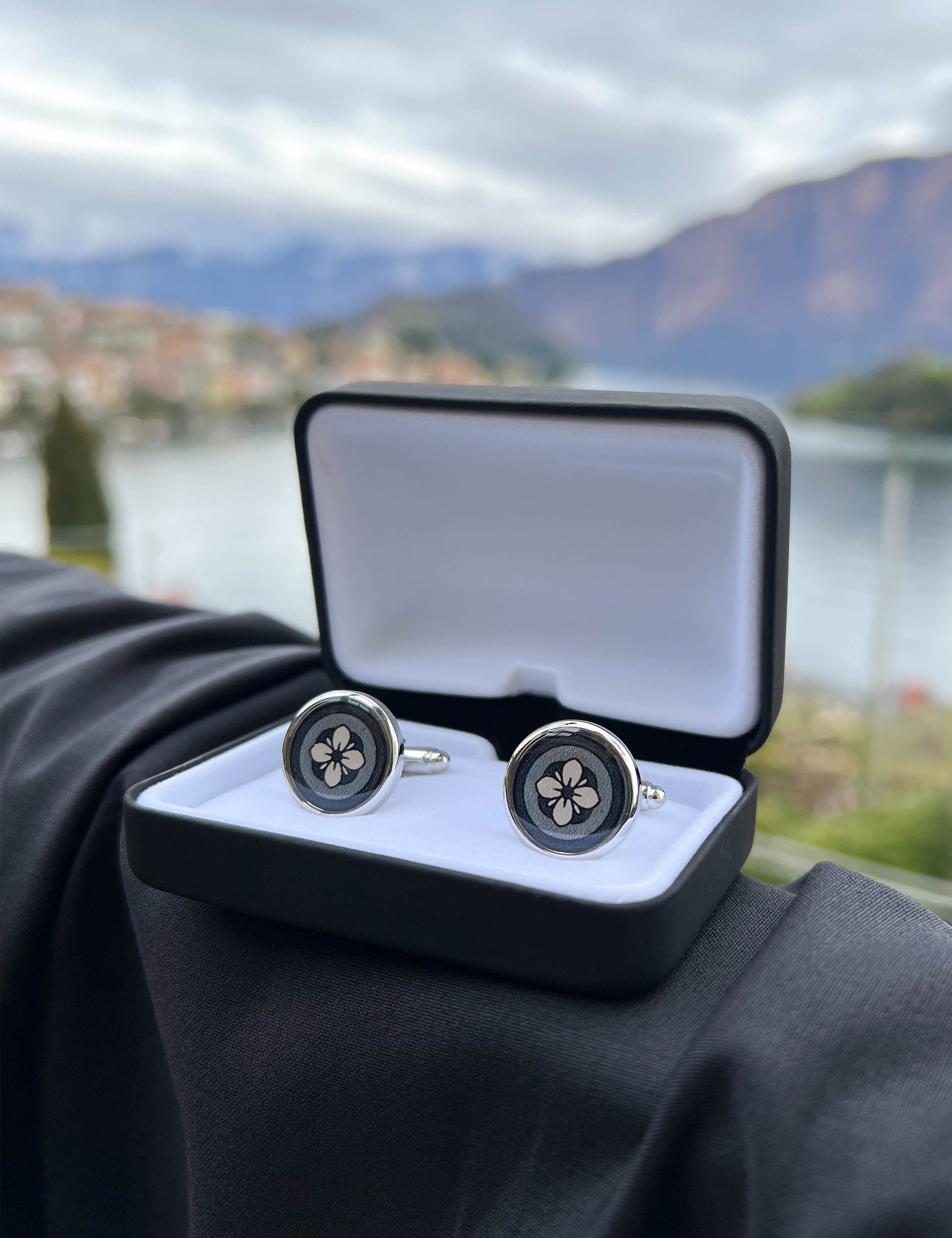 Chalk White Floral Print Handmade Italian Cufflinks with Clear Resin