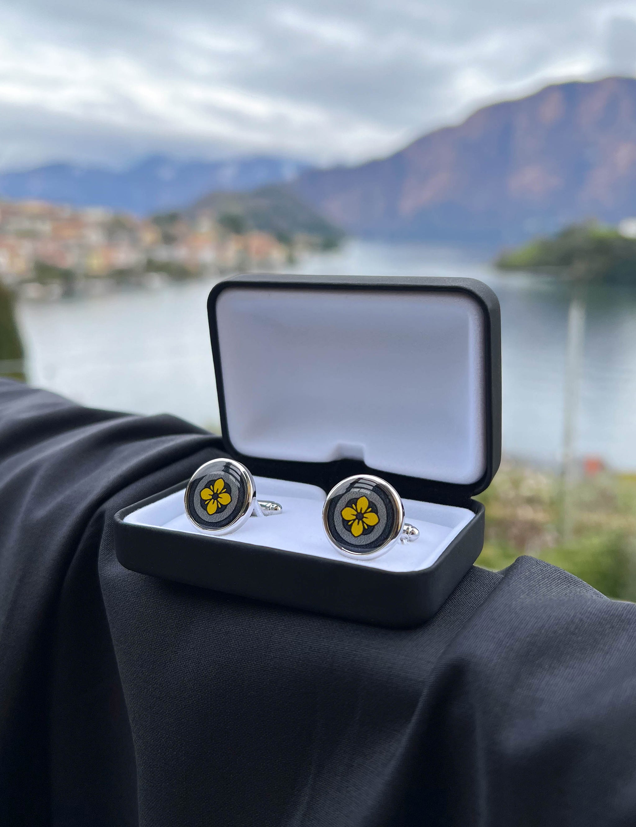 Lemon Yellow Floral Print Handmade Italian Cufflinks with Clear Resin
