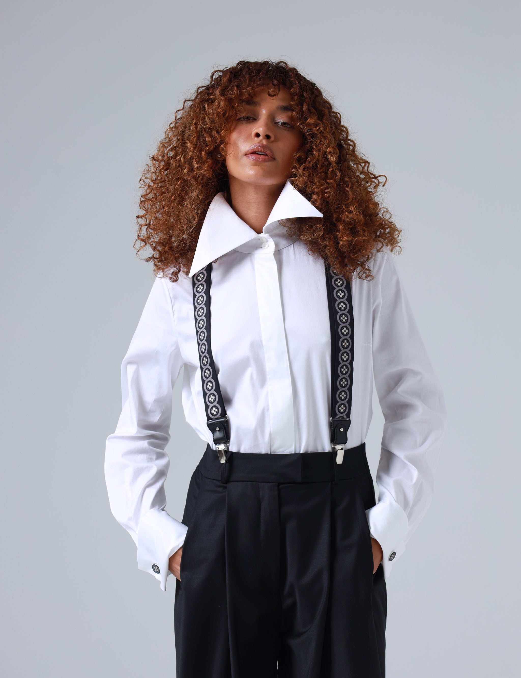 Sicily Chalk White Floral Patterned Silk Suspenders