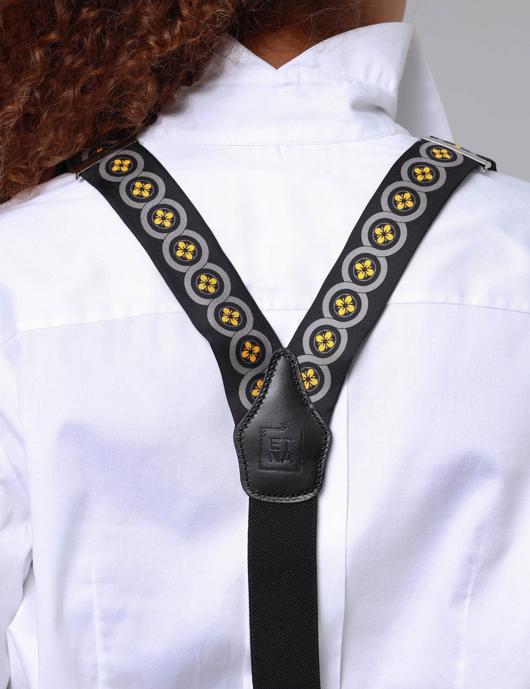 Sicily Lemon Yellow Floral Patterned Silk Suspenders