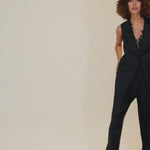 Liza trousers in a timeless dark black color add a touch of classic elegance to any outfit. Expertly tailored, they provide a comfortable fit for all-day wear, whether in a business setting or during leisure activities. This suit effortlessly bridges the gap between professional attire and casual elegance, making it an essential choice for those who value both style and functionality. The rich black hue ensures it remains a timeless and adaptable addition to your wardrobe, adaptable to various personal styles and settings.