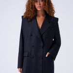 Broadway Liza Double-Breasted Virgin Wool Blazer in Deep Black