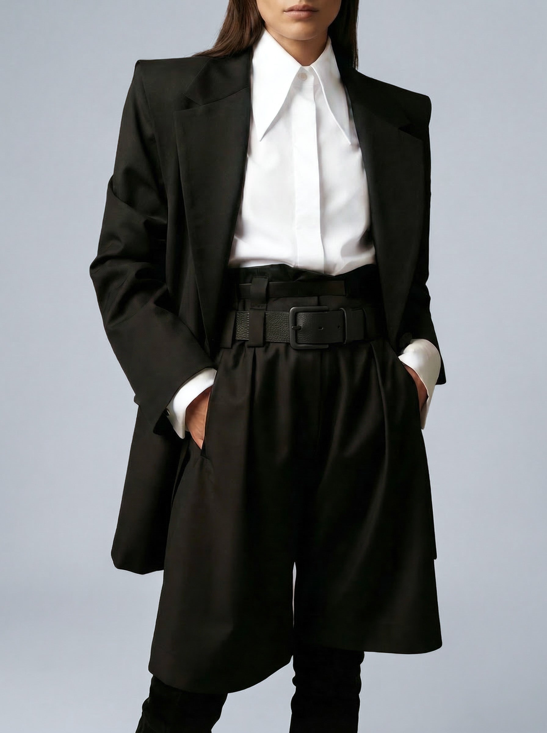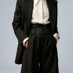 Liza Bermuda shorts in deep black wool gabardine embody absolute stability, transforming every appearance into a statement of quiet authority and composed confidence.