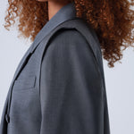 Broadway Sophia Double-Breasted Virgin Wool Blazer in Grey