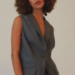 The Sophia waistcoat is a must-have piece with a timeless cut and a special twist - an elegant cut-out on the back, creating an open-back design. Crafted from light-gray fabric, this waistcoat exudes the enduring charm of classic fashion. Its tailored fit beautifully accentuates the wearer's silhouette, offering a sharp and polished look. Whether you’re attending a formal business meeting or a casual outing, the Sophia waistcoat is a versatile garment that will make you stand out