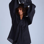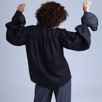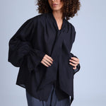 Protagonista Tencel Bow-Tie Black Blouse With Voluminous Airy Sleeves