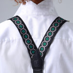 - Leather Y-back branded patch, button loops, attachments are designed from Genuine buffalo leather, tanned and prepared for the production of our suspenders in Tuscany.