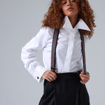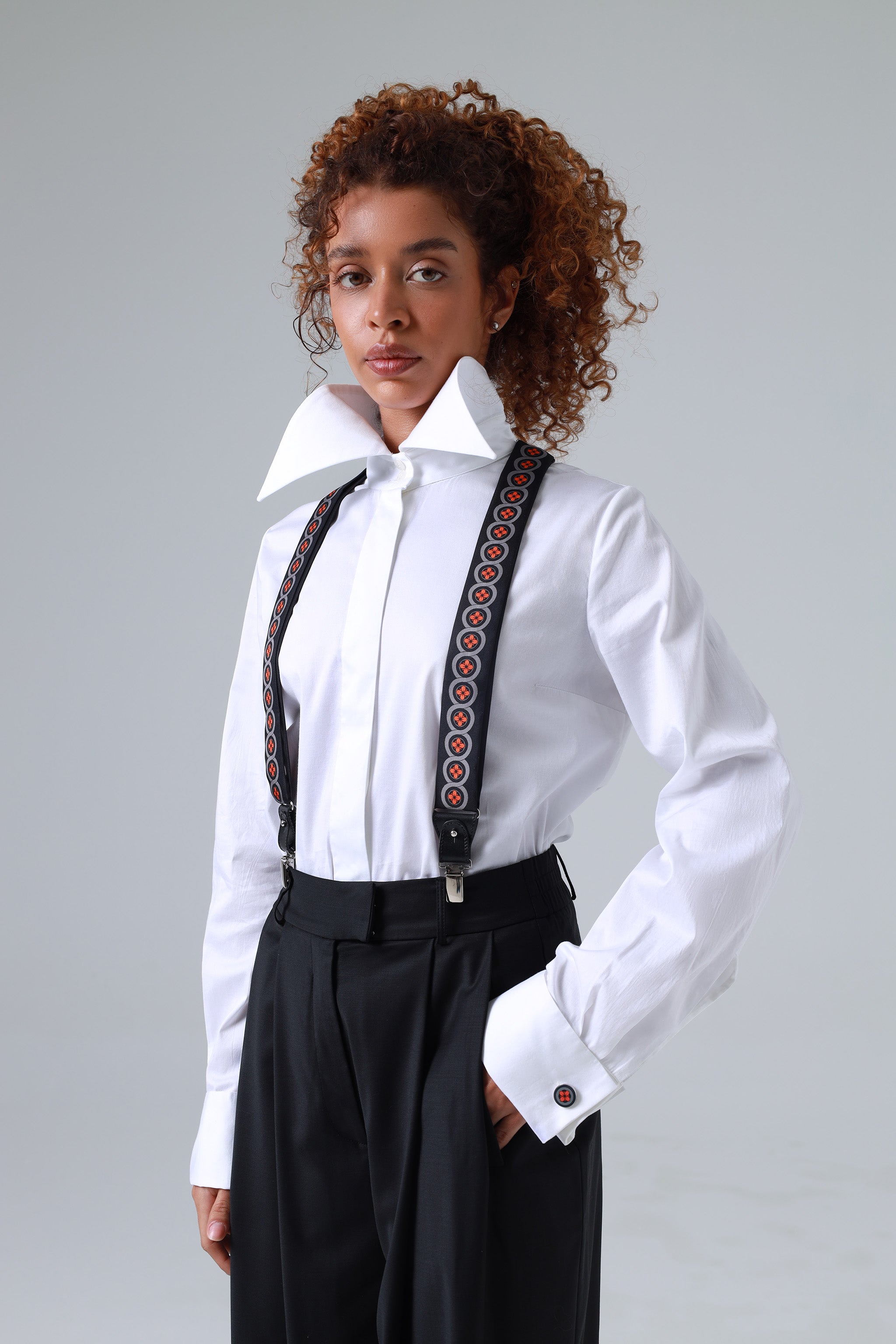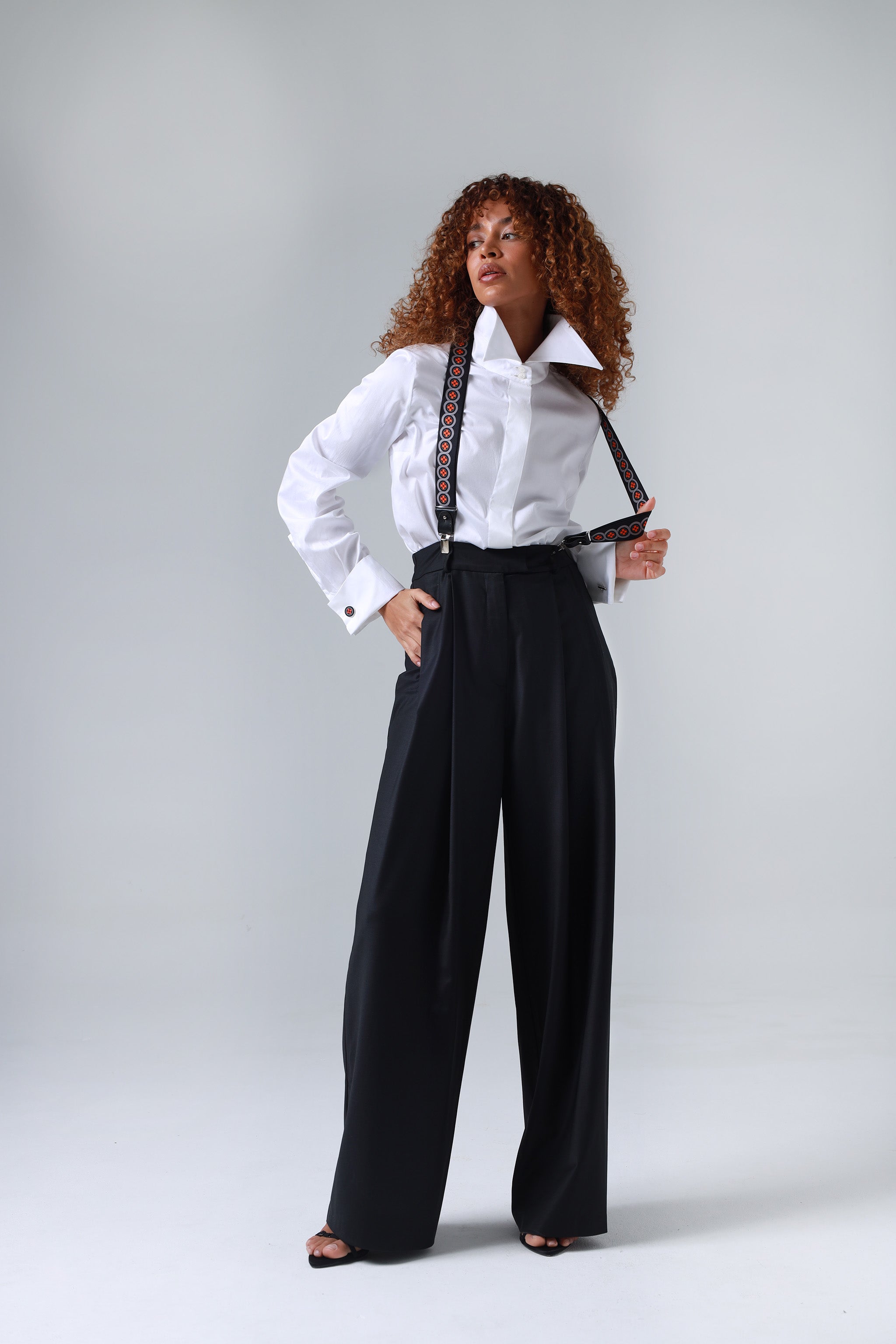 They are the perfect classic width: 3.5 cm (1 3/8 inches) and have minimalist precision-crafted metal adjusters, so will suit any body type and height flawlessly. Such a width will always fit perfectly with any bottom, whether wide or classic pants, as well as with any top, whether slim or oversized shirts and jackets.