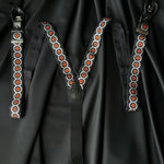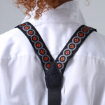 - Leather Y-back branded patch, button loops, attachments are designed from Genuine buffalo leather, tanned and prepared for the production of our suspenders in Tuscany.