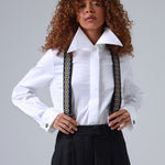 - Leather Y-back branded patch, button loops, attachments are designed from Genuine buffalo leather, tanned and prepared for the production of our suspenders in Tuscany.