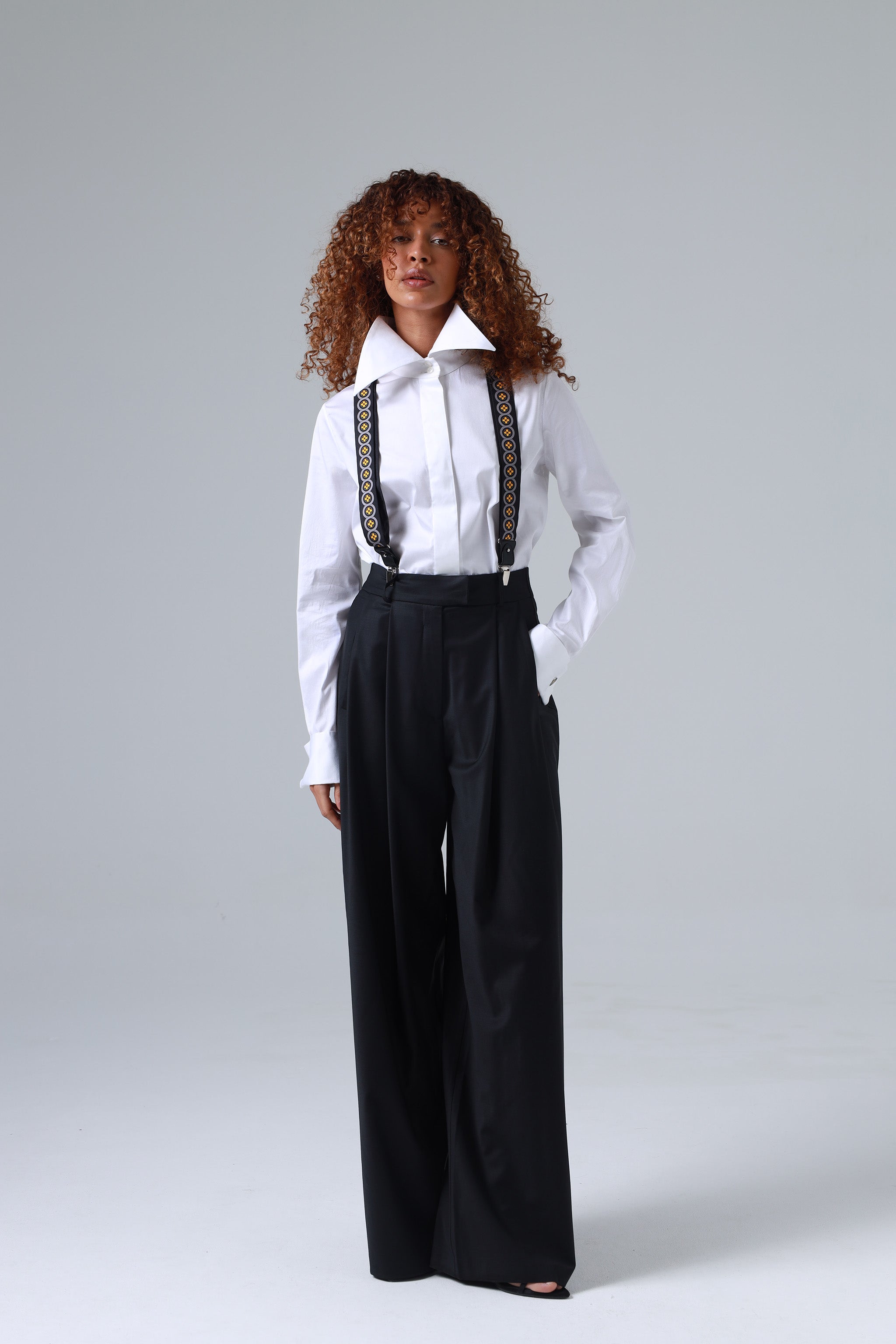 They are the perfect classic width: 3.5 cm (1 3/8 inches) and have minimalist precision-crafted metal adjusters, so will suit any body type and height flawlessly. Such a width will always fit perfectly with any bottom, whether wide or classic pants, as well as with any top, whether slim or oversized shirts and jackets.